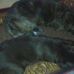 Siskoni tuli eilen vanhempieni koiran kanssa meille, käytiin sitten haukkujen kanssa lenkillä. Hyvin se sujui vaikkei Luka ole juurikaan muiden koirien kanssa lenkkeillyt, lopulta koirat kävelivät nätisti rinnakkain. Siskoni jätti Pimun meille yöksi ja yö meni taas ihan pipariksi. Ainakun Luka vaihtoi nukkumapaikkaa seurasi Pimu perässä ja alkoi nuolla Lukaa, pitkin yötä sai olla Pimua …